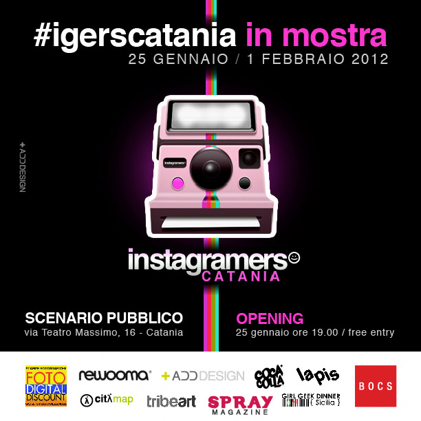 Il prossimo 25 Gennaio la community catanese di instagramers esce dalla rete inaugurando alle ore 19:00 nella sede di Scenario Pubblico (in via Teatro Massimo, 16 a Catania) la prima mostra fotografica degli Instagramers etnei che sarà visitabile fino all’1 Febbraio. Partner dell’evento fra gli altri sostenitori anche il nostro caro Spray Magazine, il primo free press femminile catanese.