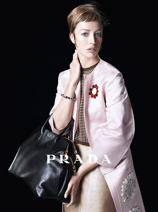 I fiori come motivo ricorrente su abiti, borse peluche e occhiali da sole, un riferimento scontato alla primavera per una collezione firmata Prada da cui ci si aspetterebbe di più, che si salva dalla banalità grazie al mood orientaleggiante che la contraddistingue: tessuti lucidi, sandali con zeppe lavorate da indossare con calzini a contrasto e look da moderna geisha, per chi ama giocare con le tradizioni di culture lontane. Altre immagini della collezione Prada Spring-Summer 2013 a seguire nella gallery. IN o OUT per Miuccia?