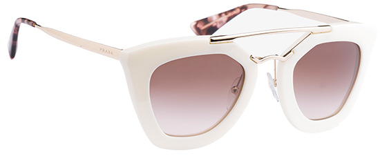 Prada sceglie l’accostamento di acetato e acciaio (€ 230), mentre, restando in territorio di Miuccia, anche MiuMiu gioca con i contrasti, con i modelli Wink (€ 270) e Rasoir (€ 240) semi-rimless (la forma è interrotta nella zona inferiore o superiore).