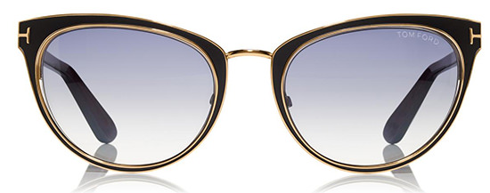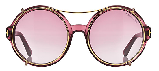 Tom Ford per gli occhiali da sole è una certezza, fogge mai noiose, dettagli che fanno la differenza… come il modello Juliet ($395), occhiali tondi (round glasses) con clip, una struttura in acciaio sovrapposta a quella base, che ricorda moltissimo le montature in viga negli anni Settanta. C’è anche Nina, per chi ama la semplicità dell’occhiale a gatta ($425).