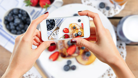 [foto ragazza che fotografa la colazione via Shutterstock]