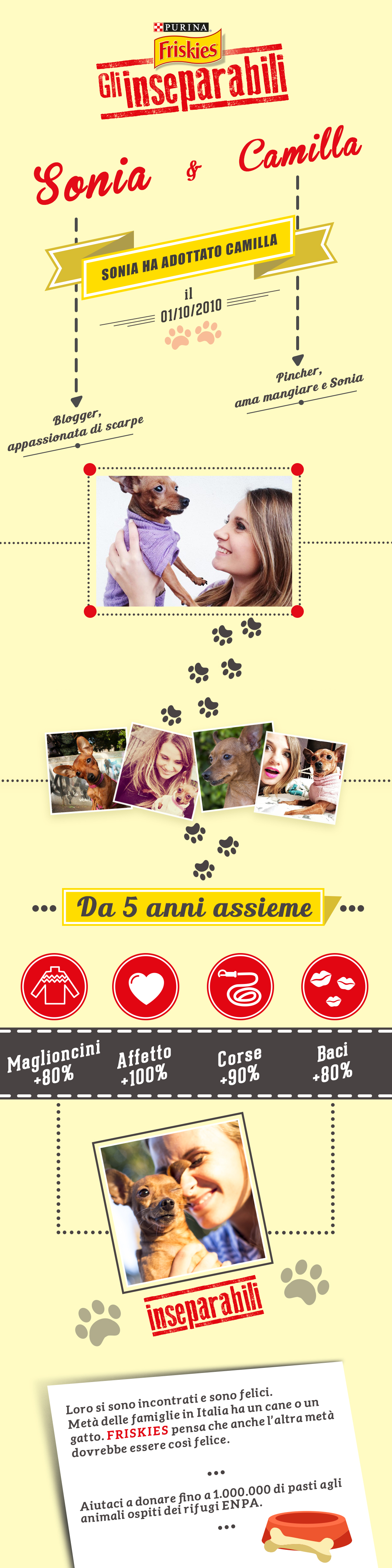 Per sapere di più di questa iniziativa e tenere d’occhio il contatore dei pasti raccolti fino ad ora, date un’occhiata Qui e seguite gli hashtag #petlovers e #friskiesinseparabili sui social e QUI trovate la storia di me e Camilla, come non ve l’ho mai raccontata.