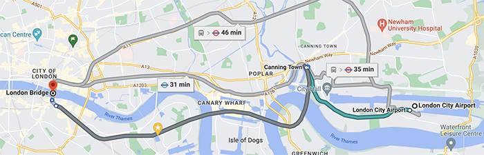 L’aeroporto più centrale è sicuramente London City Airport, piccolo e frequentato specialmente per viaggi business, in 30 minuti ti porta a London Bridge con una combinazione di DLR (Docklands Light Railway) e metro (Jubilee). Risulta accessibile come spesa in taxi rispetto agli altri, con Uber potresti spendere £30 fino a London Bridge, puoi simulare sull’app di Uber il tragitto anche adesso per avere una stima del costo.