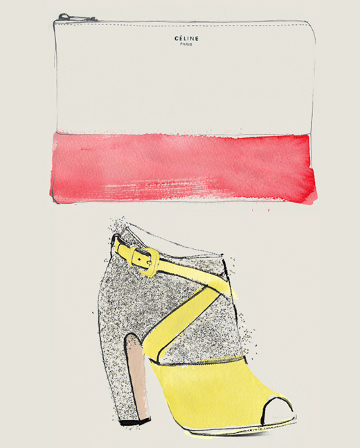 Ha lavorato e collabora da New York con Vogue, Grazia, Flare, Refinery 29 e Glamour, Bernadette Pascua è un’illustratrice dall’incredibile talento ed un tratto così elegante e ricercato, che merita d’essere scoperta, per hi non la consocesse già. Trovate i suoi splendidi disegni sul sito ufficiale e su Tumblr. Fra le illustrazioni a tema moda non potevo non selezionare le sue fedeli ripduzioni di una cklutch Celine e delle scarpe glitter di Miu Miu.