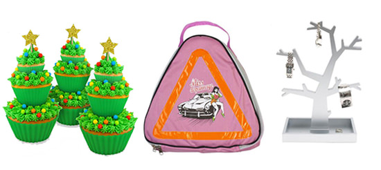 Per chi ai dolci preferisce i gioielli, un albero portagioie potrebbe tornare utile, per tenere a vista orecchini, collane e bracciali e non dimenticarli sul fondo di un cassetto e per le donne che non vogliono rivolgersi agli uomini quando la macchina fa le bizze, il kit per auto rosa è un’ideale tanto utile quanto rivertente.