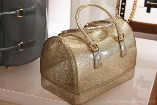 La Candy Bag è la nuova punta di diamante di Furla, una borsa divenuta iconica per il brand, segno di un passaggio dalla tradizione al moderno, di un’evoluzione che accosta l’azienda ad un nuovo target. Il bauletto in pvc viene in questa versione colorato di turchese e rifinito con vitello stampa pitone, l’aggiunta di una comoda tracolla lo rende più pratico di prima, risolvendo il dramma di chi non ama le borse da portare a mano. Accanto alla versione Python fanno bella mostra di sè quella in glitter, declinata in svariate colorazioni e quella in pelle color caffè. A seguire altre foto, intanto sul sito potete scoprire i nuovi colori della Candy Bag per questo inverno, adoro il verde ed il marrone (prezzo 155 euro).