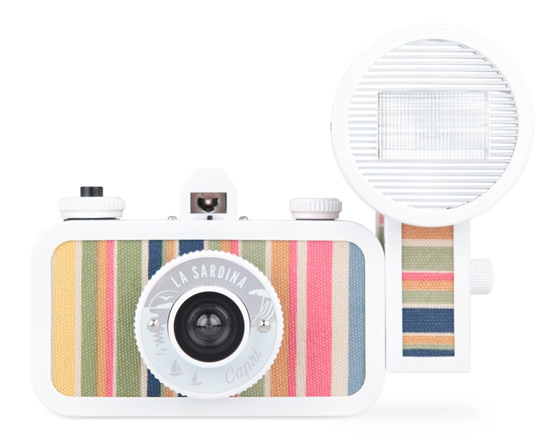 Strumento analogico per i nostalgici della fotografia da sviluppare ma anche accessorio glamour da sfoggiare in spiaggia, la Sardina Beach Edition di Lomography si tinge di strinsce multicolor che richiamano le fantasie delle sedie a sdraio e ombrelloni delle spiagge, dieci colorati tessuti, tagliati in modo diverso, per cui nessuna fotocamera avrà lo stesso aspetto.