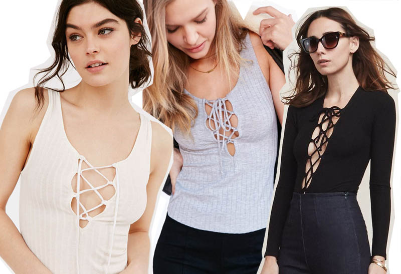 Anche conosciuti come Lace-Up Ribbed Top, dopo il boom degli anni Settanta ce ne eravamo dimenticati, poi d’un tratto in questo 2016 sono apparse e non c’è donna, influencer, icona di stile, modella che non le abbia sfoggiate almeno una volta. Generalmente a maniche lunghe (per questo adatte più che altro alla primavera) richiedono la rinuncia del reggiseno e per questo non sono entrate nel guardaroba di tutte le donne, spesso si trovano in versione body, perché vanno indossare rigorosamente aderenti, abbinate a jeans, pantaloni o mini gonne.Lace-Up-Ribbed-Top-trend