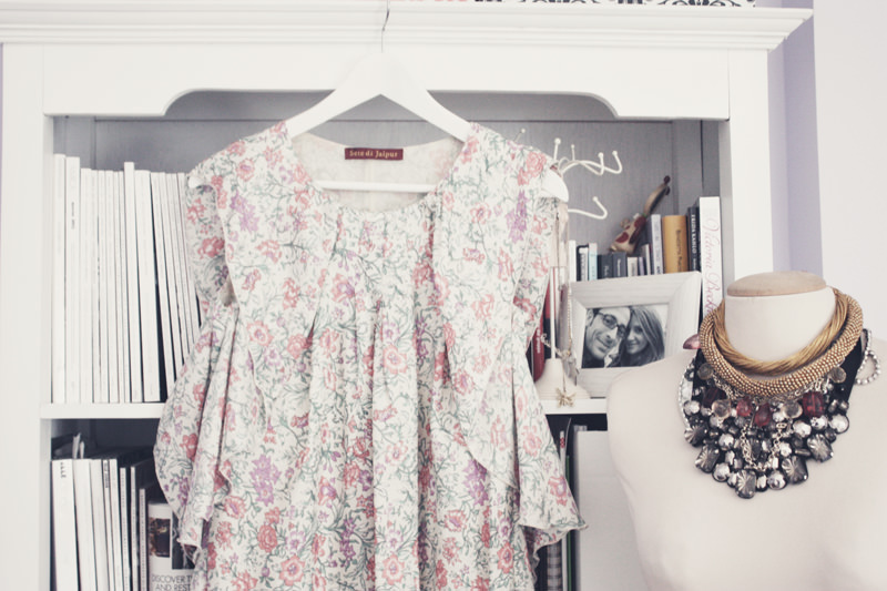 Femminilità, romanticismo, eleganza… a chi non è successo di svegliarsi una mattina e sentire il bisogno di queste tre parole? la mia necessità è stata soddisfatta quando ho indossato un di Sete di Jaipur: elegante, romantico e femminile. Il tessuto quasi impalpabile avvolge delicatamente il corpo, il motivo dell’abito me l’ha fatto amare da subito, un misto tra floreale e dettagli che richiamano alla mente i maxi foulard di seta che si rubavano dagli armadi della mamma.