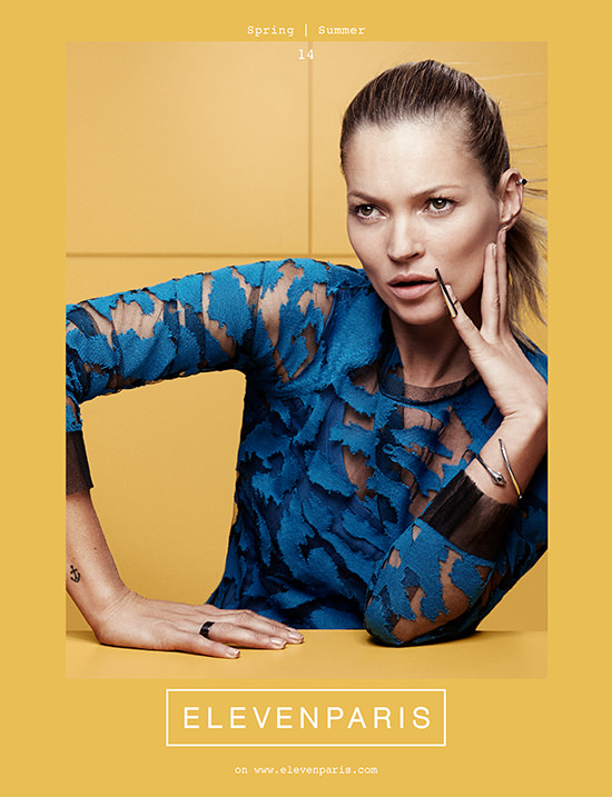 Kate Moss è il nuovo volto di ELEVENPARIS per la campagna Spring-Summer 2014 del brand fondato da Dan Cohen e Oriel Bensimhon, gli scatti sono del fotografo Craig McDean. Passano gli anni e le stagioni, ma Kate resta sempre l’unica capace di generare scatti fantastici, anche semplicemente con uno sfondo monocromatico.
