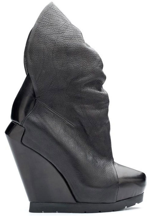 Abbiamo già parlato di Cinzia Araia, giovane stilista di Venezia, le cui calzature dell’omonimo marchio hanno conquistato non pochi di voi con la scorsa collezione. Ispirate dallo street-style e dai look maschili, realizzate attraverso la sovrapposizione di materiali differenti e desueti e fondate sul concetto di sperimentazione di forme e volumi, le calzature del brand per la collezione autunno-inverno 2011-2012 non tradiscono le aspettative eccetto che per il colore forse, vince infatti il nero sul rosa cipria che su calzature dalle fogge a tratti futuristiche può dare un tocco di femminilità in più.