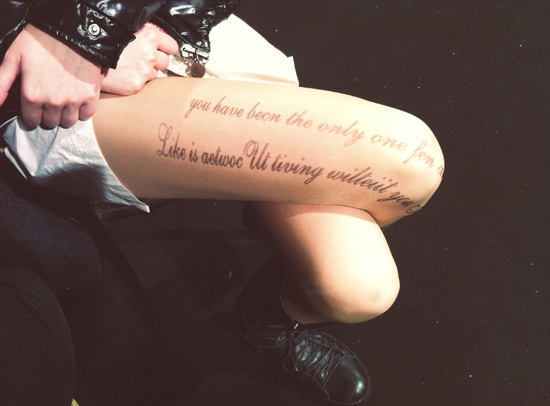 Durante la Milano Fashion Week, fra le tante cose che hanno attirato la mia attenzione, ho voluto condividere con voi i collant di una modella asiatica nel backstage di Just Cavalli. Si trattava di calze che riportavano una frase che sulla gamba destra, un accessorio romantico che si fa notare, perfetto per chi ha gambe lunghe e snelle (non per niente le indossava una modella). Non ho mai sapiuto di ce marca fossero quei collant (ma non demordo), intanto ecco quealche proposta in vendita su Oasap nella sezione collant.